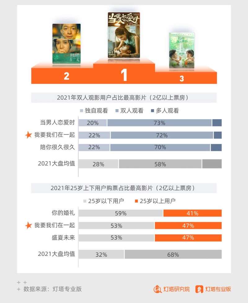2021年市场同样释放出了一些积极信号,在传统大档期之外,一批新涌现出的档期,例如七夕、六一、“520”等都产出了亮眼的票房成绩。比如今年在5月20日上映的《我要我们在一起》取得首日接近1亿、最终3.26亿元的票房成绩。除了有针对性的宣发外,影片还将上映时间定为13点14分,助推爱情片的社交仪式感,结果表明该时段票房超过了传统黄金时间,该片结伴观影比例则高达72%。《我要我们在一起》的票房表现,以及多部爱情片在“520”前后的集中上映,也让“520”首次作为一个独立档期进入了行业视野。