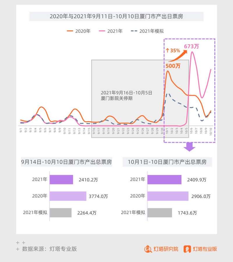 尽管疫情偶有反复的2021年对影院经营造成一定影响,但好电影依然能够唤起足够的观影信心。据灯塔研究院和灯塔专业版联合发布的《2021中国电影市场年度报告》显示,影院在短暂关停后的重启,让压缩的观影意愿爆发式输出。例如,厦门全市影院在历经20天关停后于10月6日重启,当日票房高达673万元,超过去年同期峰值,观影热情持续到了节后第一个周末。数据表明,在内容和档期合适的条件下,观众仍有大量观影意愿有待释放。
