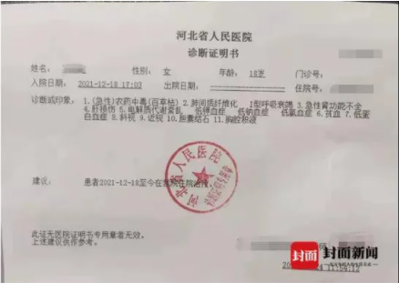 据萌萌的亲人介绍,12月6号那天,孩子觉得身体不舒服,上吐下泻,浑身没劲,家里人以为她感冒了,就在村里的小药铺抓了点药,但还是不见好,输了两天液,萌萌病情恶化。甚至无法直立行走,得父亲背着她。去医院检查时,萌萌的舌头血红,像被什么烧了一样。