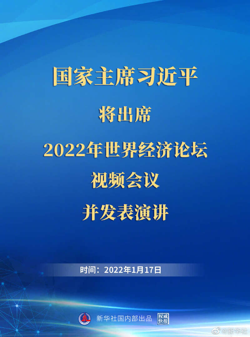 【权威快报 | 习近平将出席2022年世界经济论坛视频会议】外交部发言人华春莹1月14日宣布:应世界经济论坛创始人兼执行主席施瓦布邀请,国家主席习近平将于1月17日在北京出席2022年世界经济论坛视频会议并发表演讲。