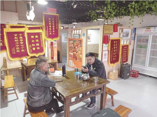甘彪今年35岁,四川广安邻水县石永镇人,在县里仿古街开了家烧烤店,店名叫“年代烧烤爱心店”。“热心助老献真情”“不畏艰难寻亲人”……店内显眼的锦旗,显示出这家店与其他烧烤店的不同。