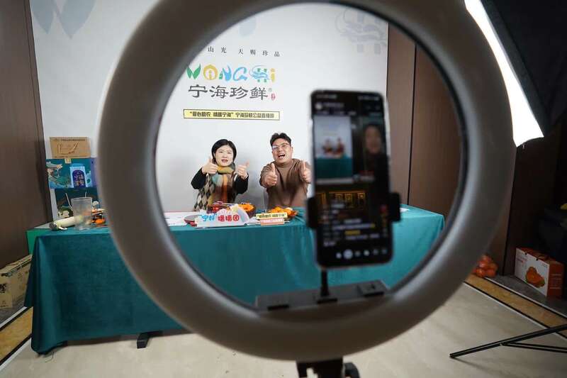 中国青年报客户端讯(中青报·中青网记者 李剑平)1月18日20时,在“宁海珍鲜”电商助农直播间,浙江省人大代表裘银芳、共青团宁海县委书记冉诗雅通过“宁海新青年”微信视频号平台,向观众介绍宁海蜜桔“宁海高山蜜桔甜度好,色泽亮,口感佳”,促销助农。