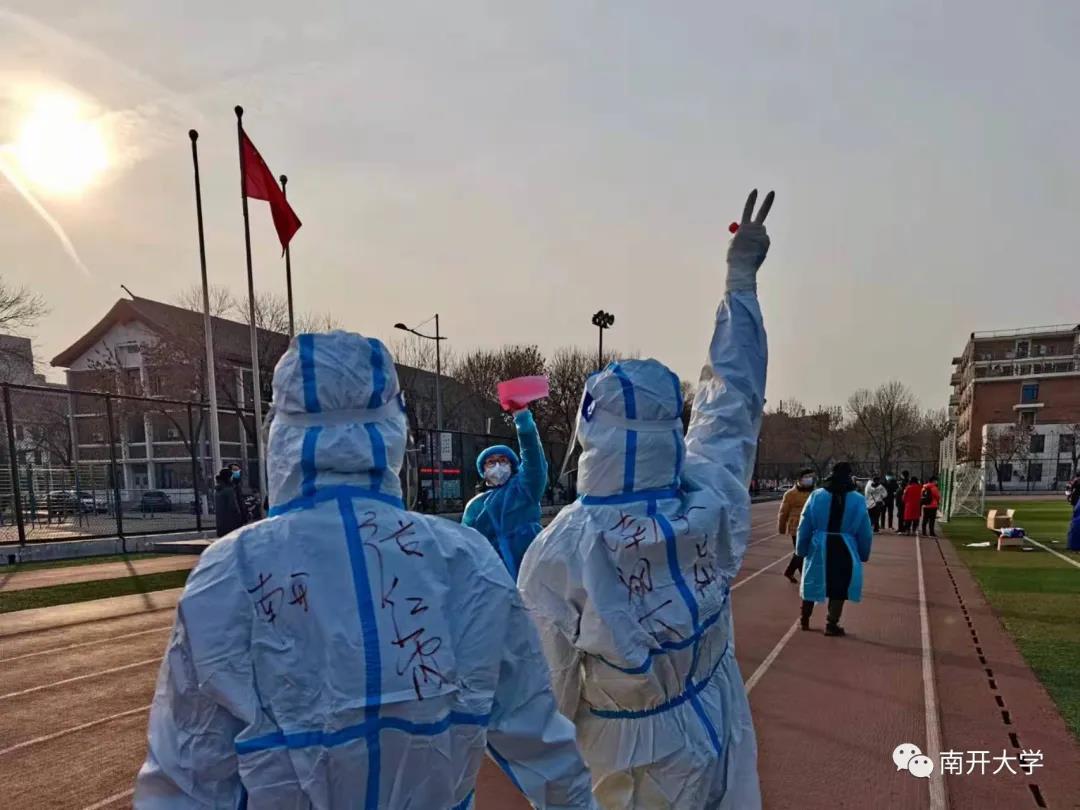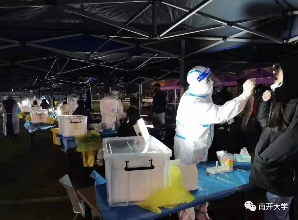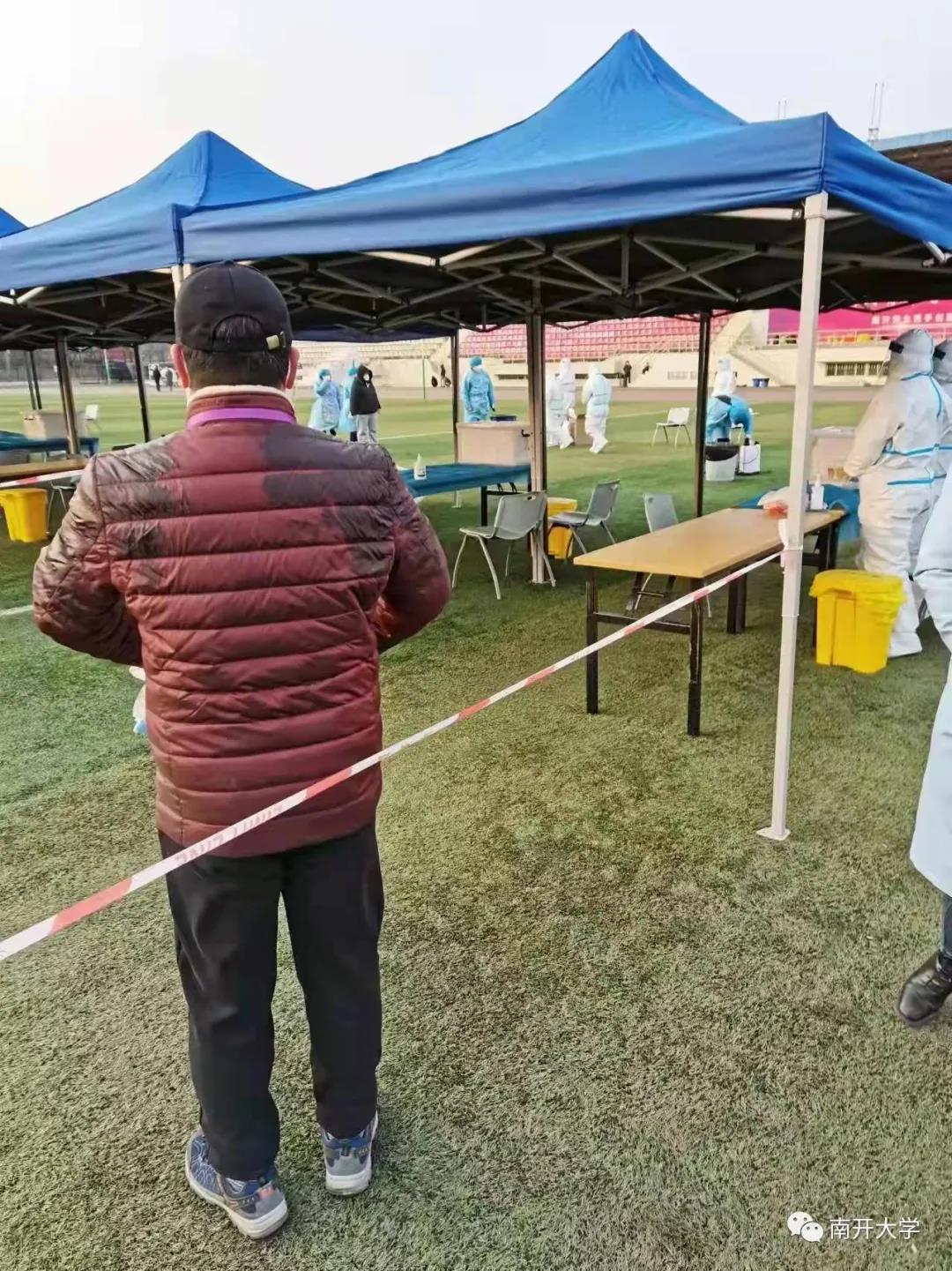 凌晨号角起,全员披战衣。按照市防控指挥部要求,1月9日,南开大学八里台校区启动全员核酸检测。凌晨3:30接到通知后,校医院立即行动,迅速组建起校医院、学府医院、广康医院等在内的联合检测队伍。凌晨4:00,工作人员和志愿者们到达体育馆,布置核酸检测点位、培训志愿者、调试核酸采集系统。6:30,医院全体核酸检测人员到岗,并迅速进入战斗状态。他们中的很多人,刚刚结束了三天离津师生核酸筛查任务……下午5:30,八里台检测任务完成后,有的医护人员又奔赴社区岗位,协助进行核酸筛查。