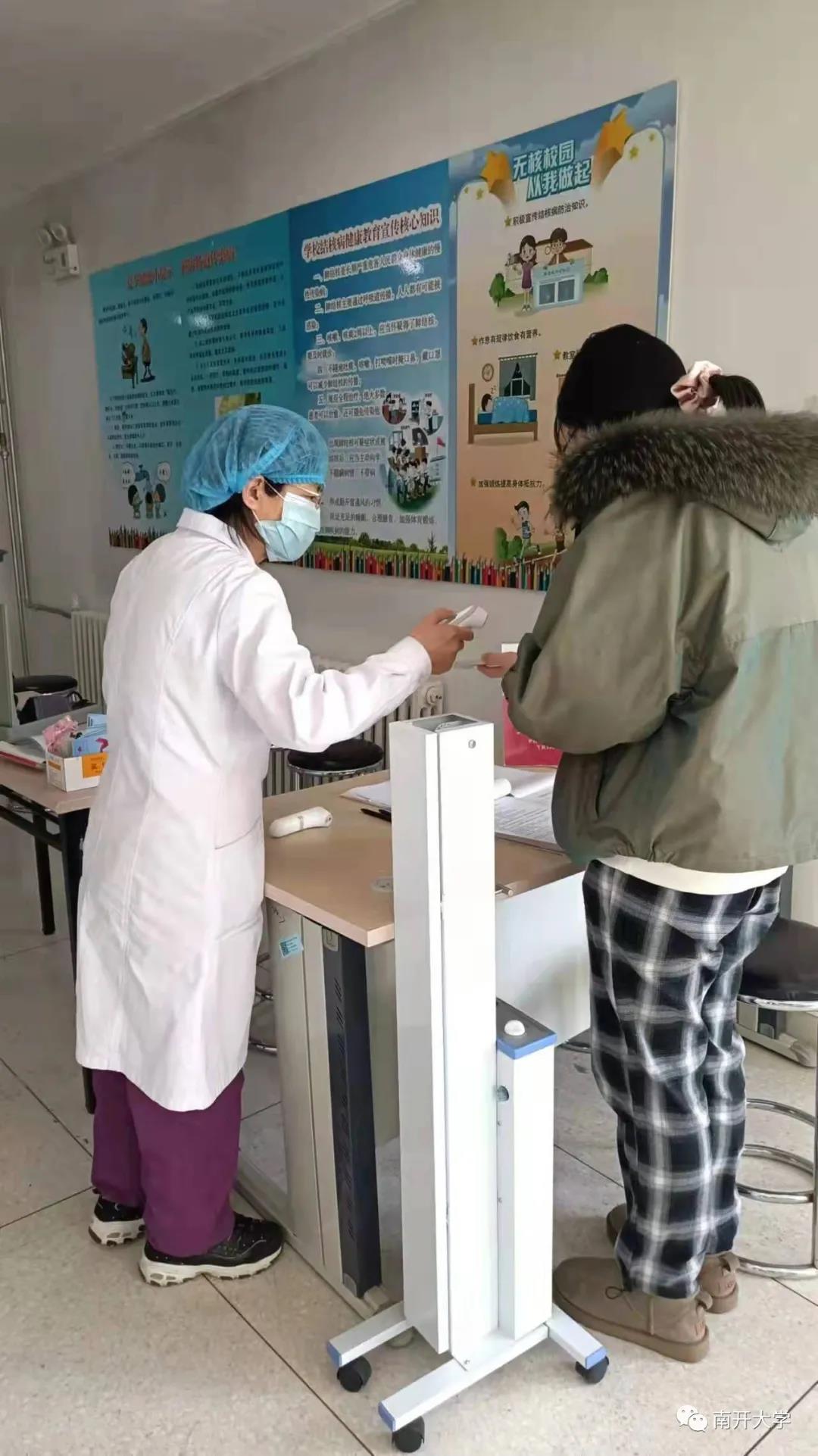 在这个过程中,他们还参与组织协调了津南校区核酸检测、协助协调防疫物资等工作。他们积极联系学工、教工等牵头部门,统计在校全部人数,保证底数清、筛查全面、不漏一人;联系物资组,请求医疗物资保障;联系属地社区卫生服务中心,协调医务人员人数,预计开设通道数……从1月8日至今,值守津南校区校医院的三位医护人员已顺利组织完成了九次全员大筛。