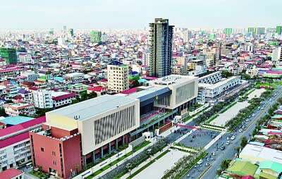 柬埔寨国防部办公楼项目2021年12月29日正式交接投入使用,项目由中国铁建旗下的中铁城建集团承建。照片显示的是位于首都金边主街道俄罗斯大道的国防部办公楼。新华社发