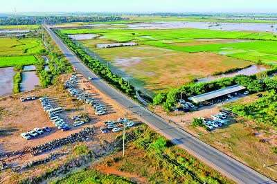由中企承建的援柬埔寨11号国家公路改扩建工程项目2021年12月6日在柬埔寨波萝勉省举行通车典礼,柬埔寨首相洪森和中国驻柬埔寨大使王文天出席。图为柬埔寨波萝勉省中国援柬11号国家公路。新华社发