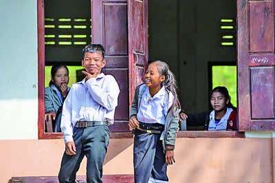 2021年12月13日在老挝哈南村拍摄的哈南中老友好学校学生。该校由在老中企援建。新华社发