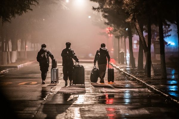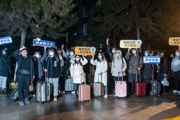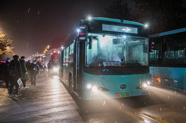 2022年1月24日凌晨,西安,西北工业大学长安校区,数十辆大巴车开入校园,长安校区首批离校返家学子在学校的暖心护送下,点对点转运至西安市内“两站一场”,有序踏上返家之路。