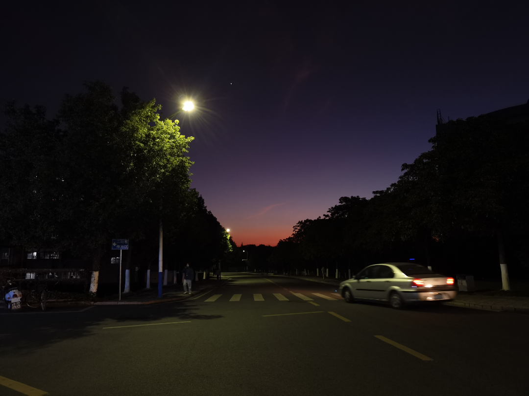 @胡芸慧:那天是周末,为了12•9大合唱比赛取得好成绩,合唱团要加训。辛苦一下午,很晚才下训,(天恰好很长)天色特别好看,大合唱真的好辛苦哦,都没有完整周末,但疲累被化解好像又真的很简单,天边晚霞,红紫相交,飘云几絮,星星点缀,看着就很舒心。