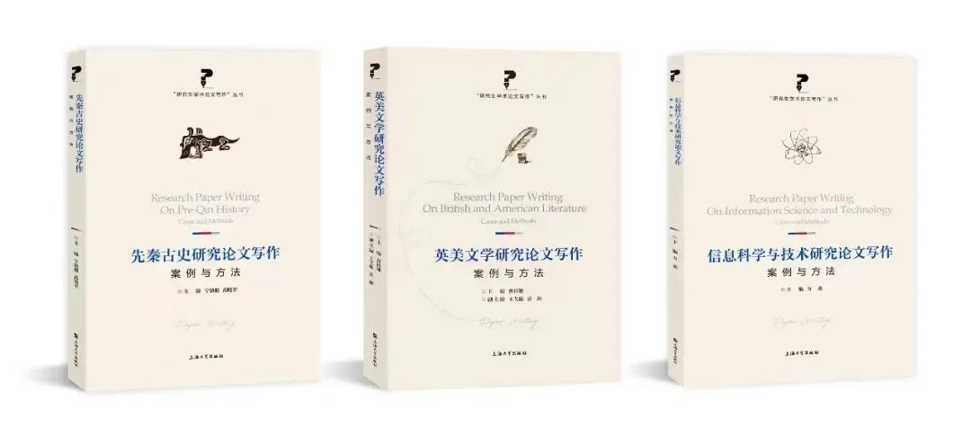 目前已出版《英美文学研究论文写作:案例与方法》《先秦古史研究论文写作:案例与方法》《信息科学与技术研究论文写作:案例与方法》三种。