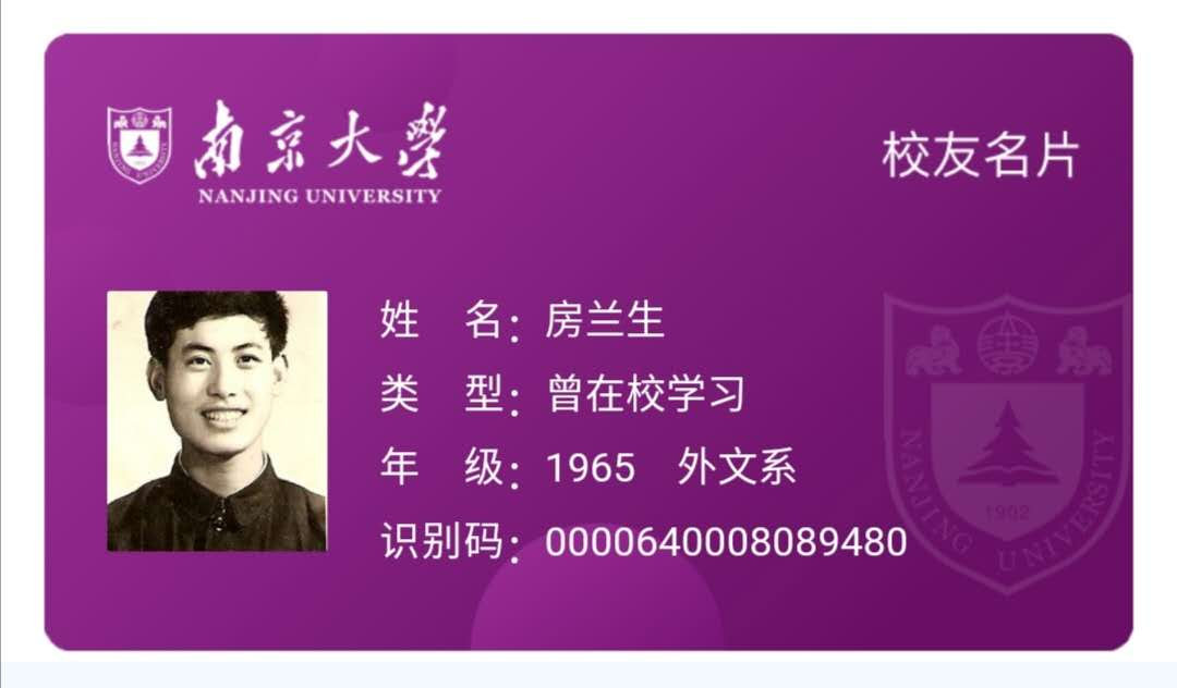 是南大教会了我怎样做人,是南大精神时刻鞭策着我的一言一行。每当我看到南大校徽、南大学生证、南大毕业证,我就想到,我是南大人,这辈子我没有辜负母校对我的培养,今年我已经是75岁高龄了,但我还是积极参加南大无锡校友会、南大宜兴校友会、南大上海校友会的各项活动,上台分享我在南大的学习情况,还有幸参加了外语系100周年庆典活动。