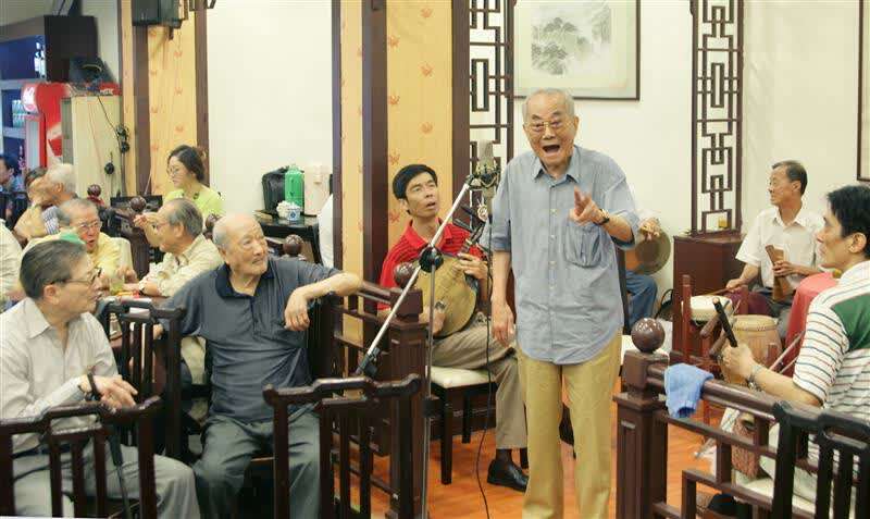 杨华生(站立者)参加京剧票友清唱会,金定根摄