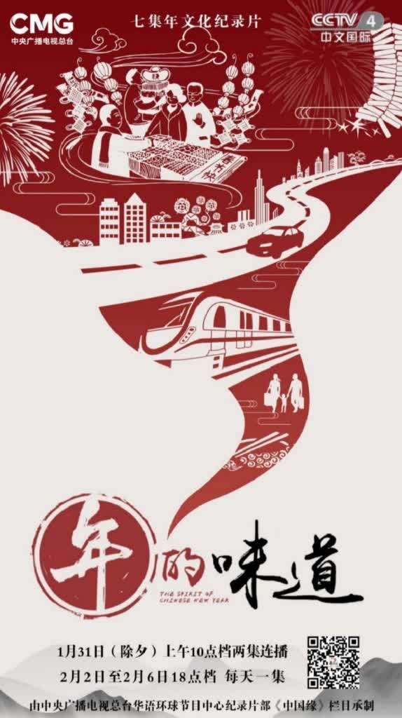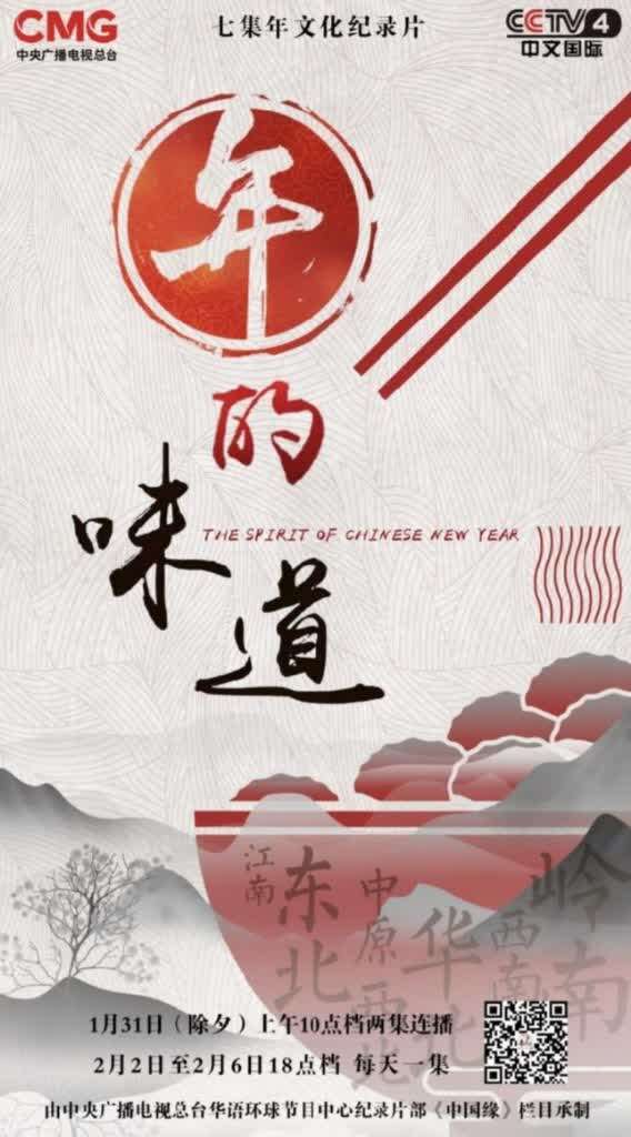中国青年报客户端讯(中青报•中青网记者 吴晓东)由中央广播电视总台华语环球节目中心纪录片部《中国缘》栏目承制的七集年文化纪录片《年的味道》,1月31日(除夕)上午10:00将在CCTV-4开播。纪录片通过讲述30个普通中国家庭鲜活生动的过年故事,追根溯源展现年文化,并通过中外知名专家的访谈,以国际化视角带领观众解读年的味道,展现中国人对美好生活的追求和向往。