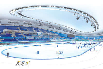 1月28日,国家速滑馆“冰丝带”正式对媒体开放。