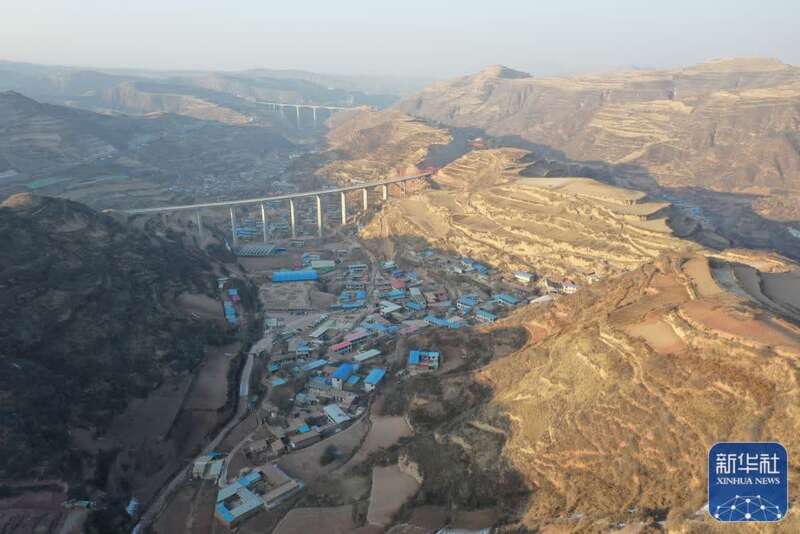 ↑这是1月31日拍摄的兰州市七里河区西果园镇袁家湾村(无人机照片)。