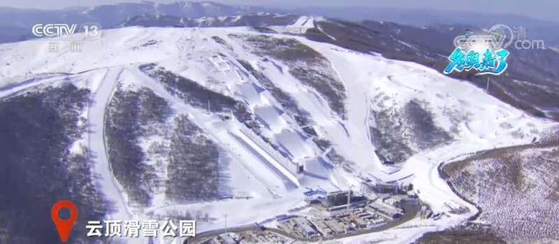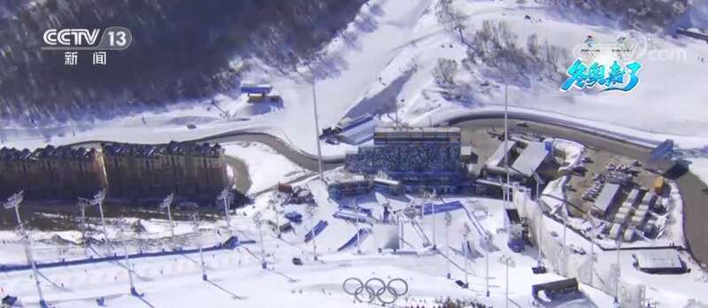 一路向北飞行,我们就来到了张家口赛区的另一个场馆群云顶场馆群,这里有北京冬奥会唯一一个利用现有雪场升级改造而成的场馆——云顶滑雪公园。现在我们看到的是云顶滑雪公园的冬奥赛道,分别是U型场地技巧、坡面障碍技巧、单板平行大回转、障碍追逐4条赛道,这4条赛道都是在原有雪道的基础上改建而成,赛后也将继续对公众开放。在海拔2000米左右的坡面障碍赛道出发处,可以清楚地看到雪长城造型景观显得格外壮观,这也就充分体现了中国传统文化与现代奥运的完美结合。