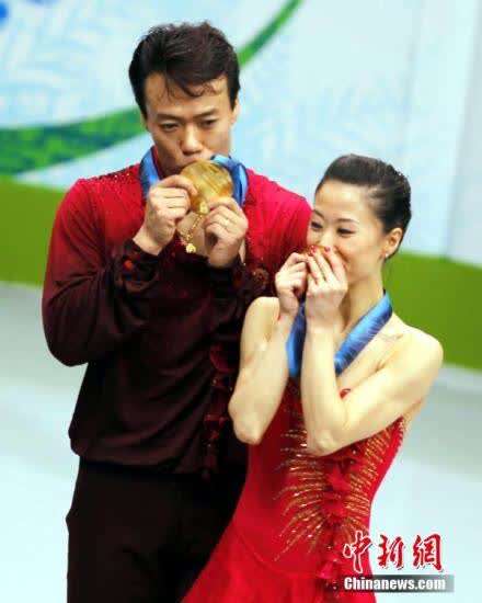 2010年,温哥华冬奥会,两人已是名副其实的老将了。对金牌的渴望让他们在短暂告别冰面后重新回归。终于,这次32岁的申雪携手37岁的赵宏博将花样滑冰双人滑金牌挂在了彼此的脖子上。