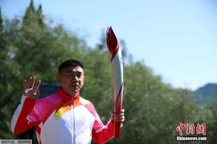 图为李佳军在传递火炬。