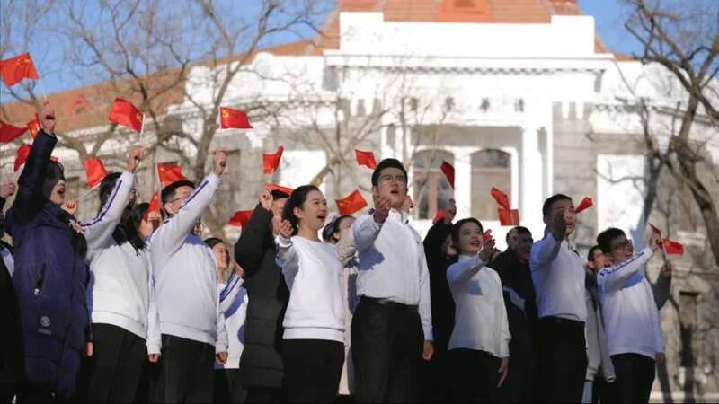 在清华大学,参与合唱的同学中有出征2022年北京冬奥会的志愿者代表,有获得国际空间探测轨迹优化大赛冠军的团队代表,有清华大学国旗仪仗队队员,还有学生艺术团的文艺骨干。他们在清晨的升国旗仪式后,在有着悠久历史的校园风物前放声歌唱,用歌声表达对党和祖国的美好祝福,更唱出青年学子的使命担当。