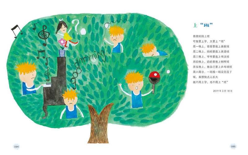 “爸爸妈妈上班,可我要上学,又要上‘班’,周一晚上,爸爸要我上奥数班,周二晚上,妈妈要我上英语班,周三晚上,爷爷要我上书法班,周四晚上,奶奶要我上钢琴班,周五晚上,我自己要上乒乓球班,周六周日,一班接一班没完没了,唉,真想快点儿长大,就不用上学,也不用上‘班’”这么有童趣的小诗是不是让你这样的打工人会心一笑,这首诗名为《上“班”》,作者是中国诗歌学会会员,嘉兴“10后”小诗人匡鸿羽,他以机智幽默又充满正能量的文字写出了当代小学生的普遍烦恼。这首诗也收录在匡鸿羽最新创作的童诗集《蟠桃味的筋斗云》中,由浙江文艺出版社推出。该诗集甄选96首童诗,构思精巧完整,字里行间闪烁着童趣、真情、智慧的光芒,不论是孩子还是成人,阅读时都会忍不住嘴角上扬,会心一笑,从诗中获得极大的情感共鸣和思维碰撞。