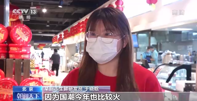 某超市生鲜研发员 于晓晗:因为国潮今年也比较火,跟各地的老字号一些联名,也有一些跟非遗文化传承的品牌联名,这也体现了消费者对于国潮及非遗等文化的一种追捧和喜爱。