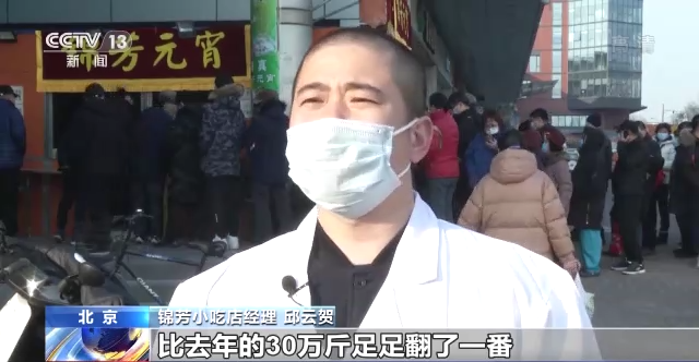 锦芳小吃店经理 邱云贺:今年元宵总共准备了60万斤,比去年的30万斤足足翻了一番。