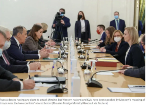 英国外交大臣利兹·特拉斯访问莫斯科。外媒报道截图
