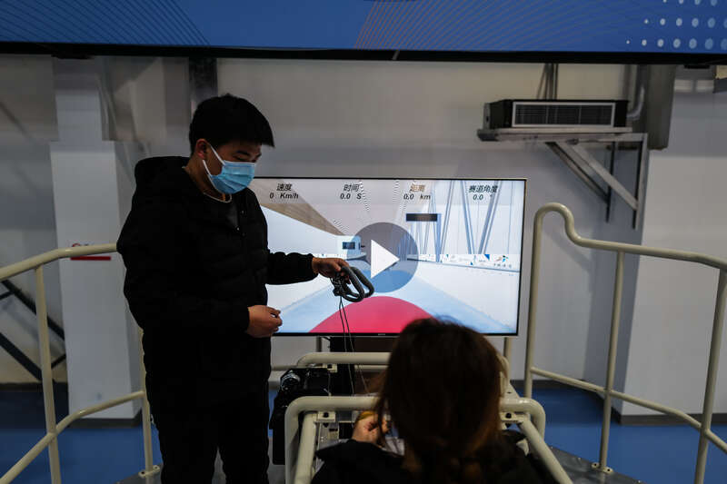 记者现场体验第一视角的雪车六自由度系统,一分钟内的训练里,赛道上的速度和角度不断变化,可感受时速超过130公里的滑行视角。