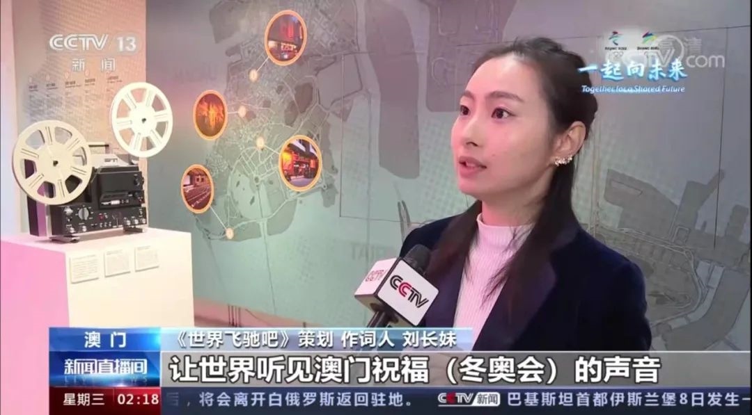 冬奥会来临之际,澳门同胞为冬奥健儿加油打气的歌曲《世界飞驰吧》正式推出,歌曲在QQ音乐、网易云音乐、国家体育局官网、学习强国、新华社、人民网等多个平台上线及展播。该曲由中央人民政府驻澳门特别行政区联络办公室宣传文化部、海峡两岸关系协会驻澳门特别行政区办事处、中国澳门体育暨奥林匹克委员会支持,澳门导演、浙江传媒学院电视艺术学院2008届广播电视编导专业校友刘长妹策划发起并作词,著名音乐制作人李峻一监制并作曲。由著名歌唱家陈思思,青年艺术家李玉刚,演员王凯、黄觉、孙茜,竞走奥运冠军王丽萍,体操奥运冠军李珊珊,华鼎奖创始人王海歌,歌手弦子、徐子未,运动员桑兰等20多位澳门与内地文体届人士联合发起。李玉刚携手澳门歌手刘乃奇、马曼莉、杜俊伟、殷巧儿、欧阳兆桦、施朗明、黄峥偲和王心妤共同演唱。这是两地音乐人祝福冬奥的首次合作,有着特殊意义。