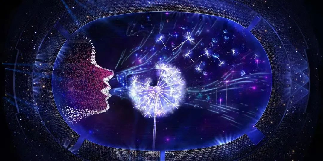 采用三角体创意,将几十组三角体拼合、打散形成冬奥项目、大树等影像,配合现场及演员表演呈现冬奥精神。