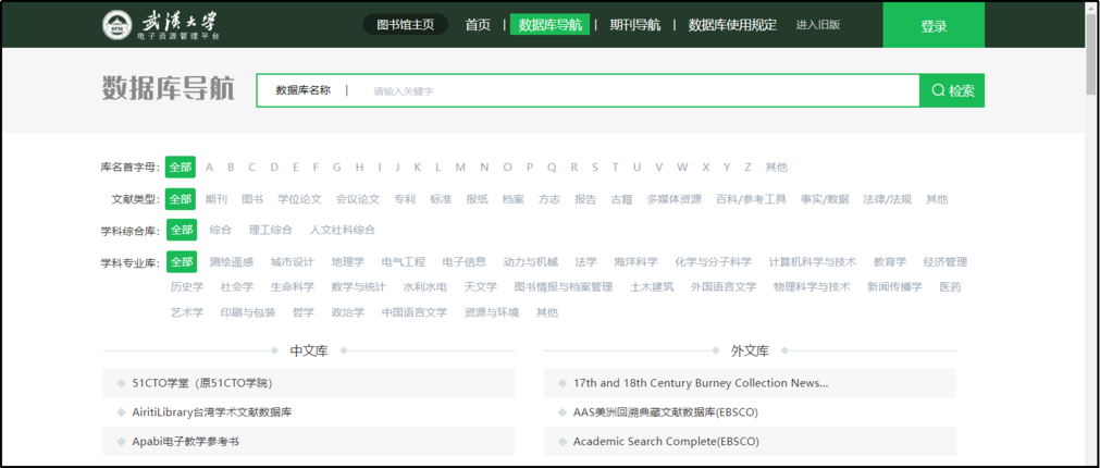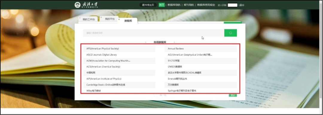 武汉大学图书馆主页>>数据库链接>>数据库导航