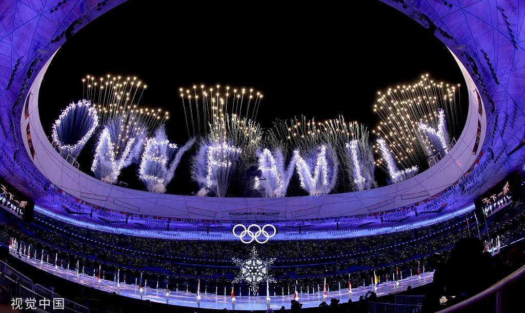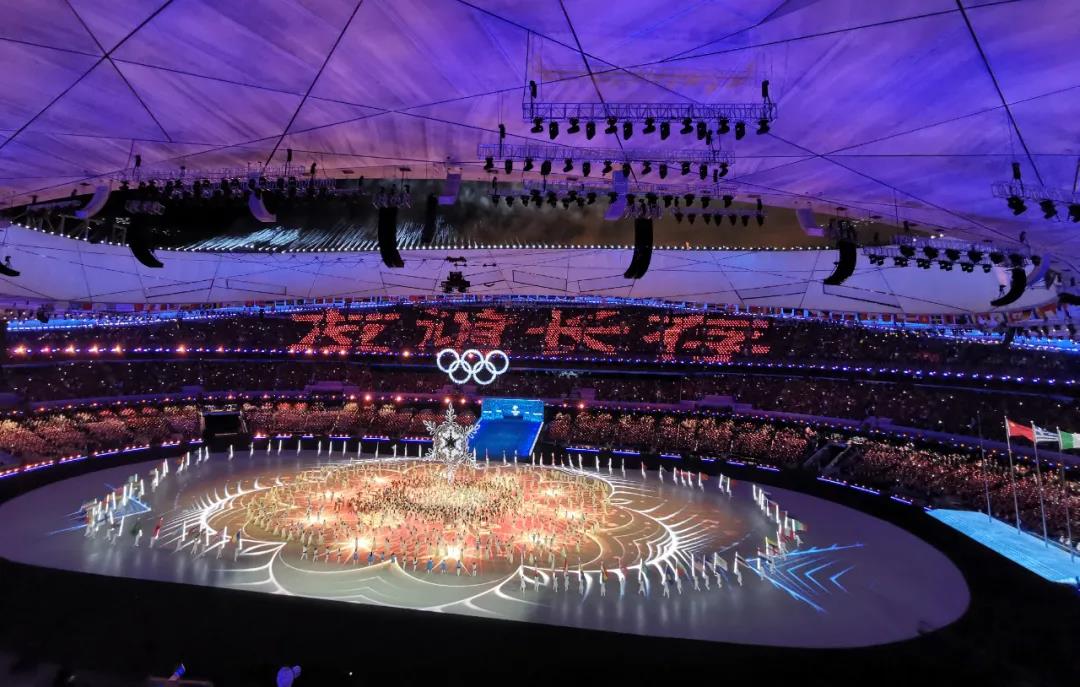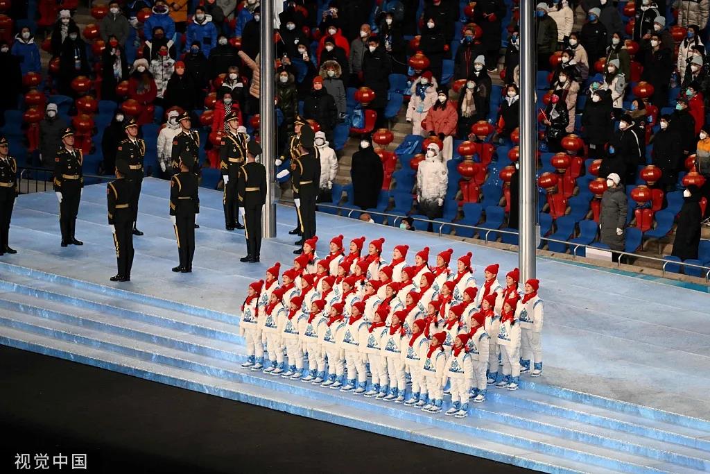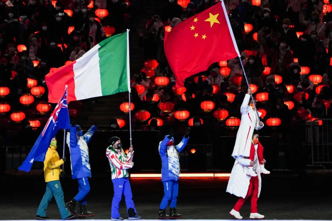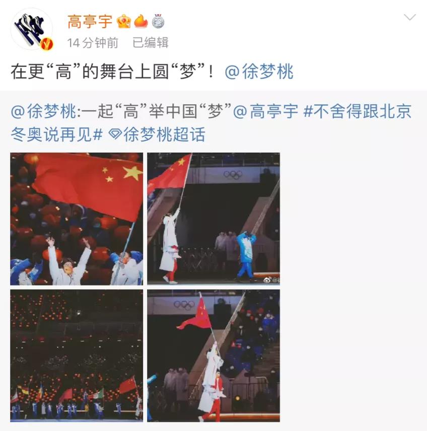 中国体育代表团旗手高亭宇将徐梦桃扛在肩上