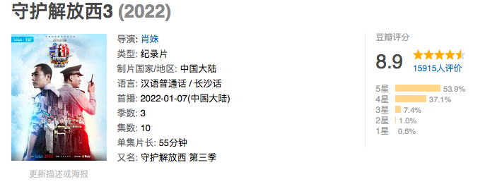 警务纪录片《守护解放西3》豆瓣评分8.9分
