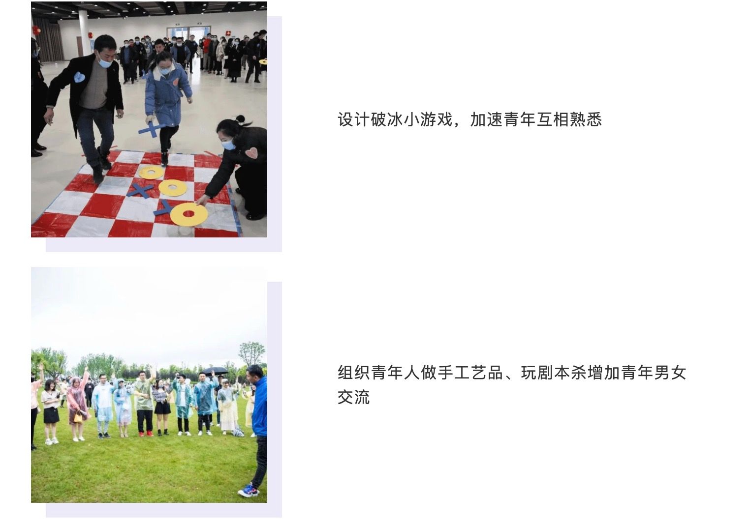 相亲联谊交友活动是促成恋爱的一种渠道,也是相关单位组织做好青年婚恋服务的前端。比起恋爱教学、亲密关系维护、婚姻关系维稳修复等服务,让单身青年彼此接触认识是第一步。
