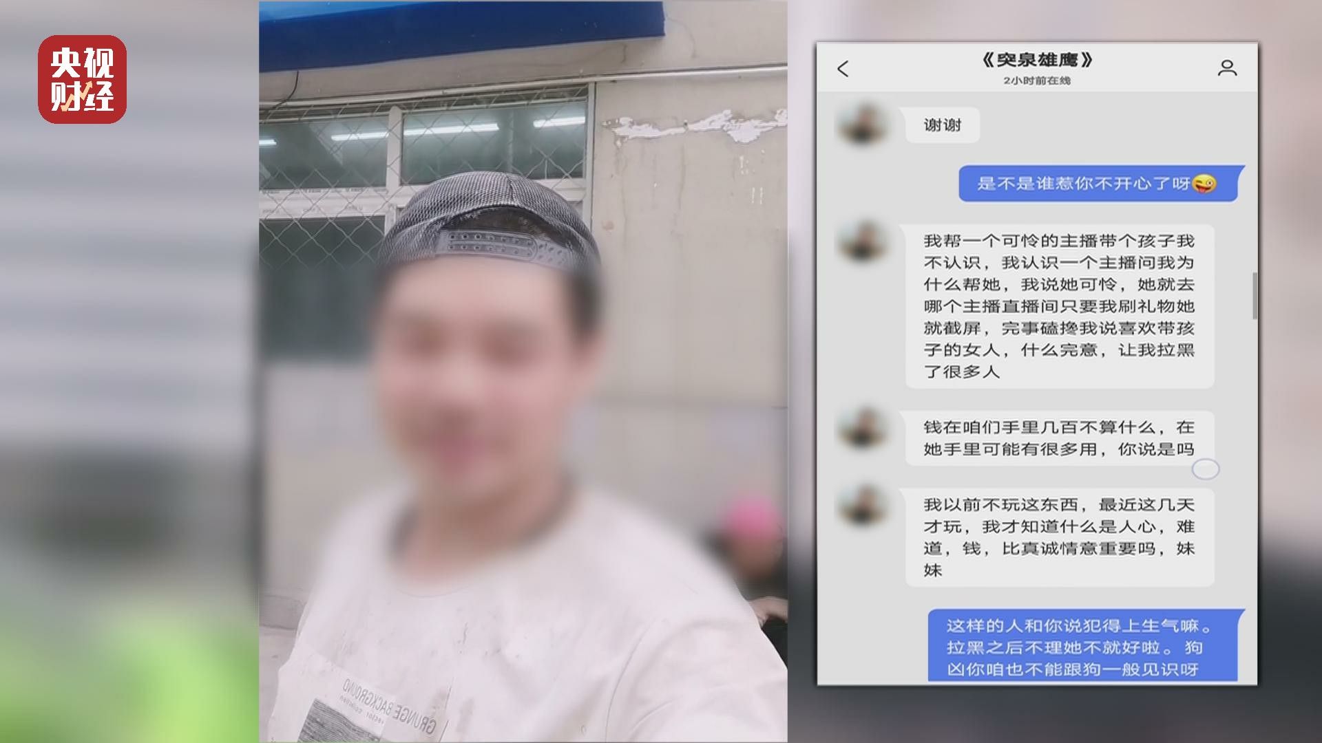 一位网名为“突泉雄鹰”的粉丝是一名建筑工人,几乎每天都会在直播间向主播打赏一两百元的礼物,只是因为每天都会收到女主播名义的嘘寒问暖。