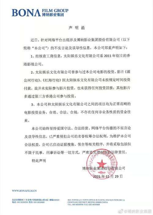 以《长津湖之水门桥》为例,该电影上映前,网络上便出现多家影视公司打着售卖该电影投资份额的旗号以及高回报的承诺,吸引各地投资者的钱款。不久,该电影主投资方及主控方博纳影业发表声明函称,从未授权任何第三方开展相关融资业务。