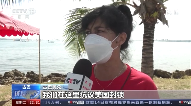 古巴民众:我们在这里抗议美国封锁,因为封锁给我们的经济、公共卫生、教育领域造成了影响,影响了所有经济发展进程。