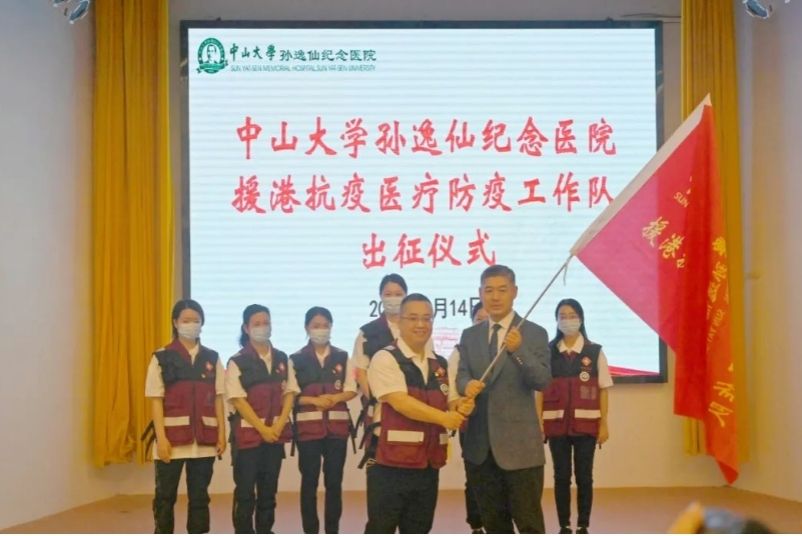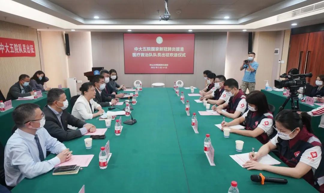 ▲中大五院援港医疗队出征仪式现场(图源:附属第五医院)