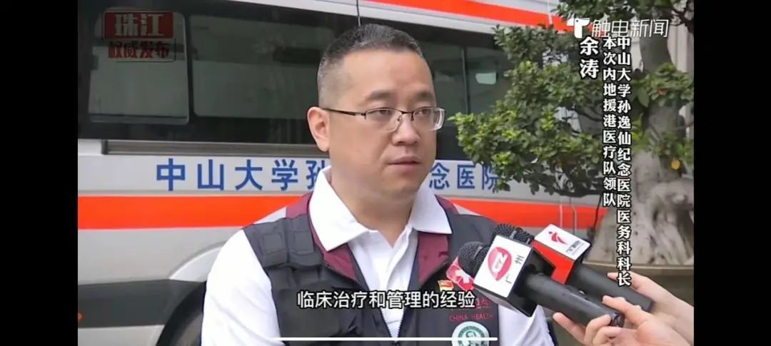 ▲医疗队领队余涛接受媒体采访(图源:触电新闻)
