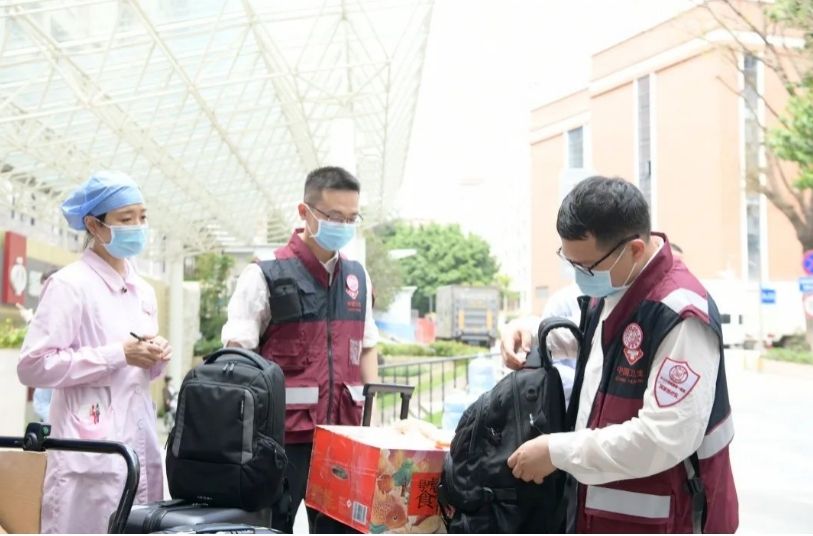▲队员们整理行装,准备出发(图源:附属第一医院)