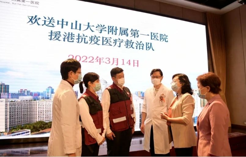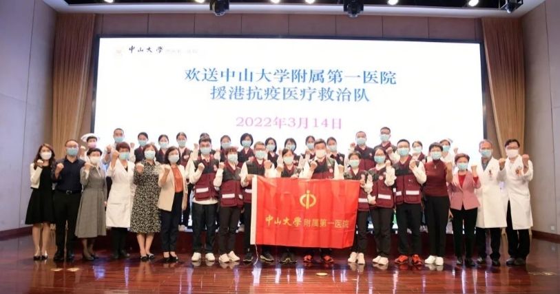 ▲中山大学附属第一医院举行援港抗疫医疗救治队出发仪式(图源:附属第一医院)