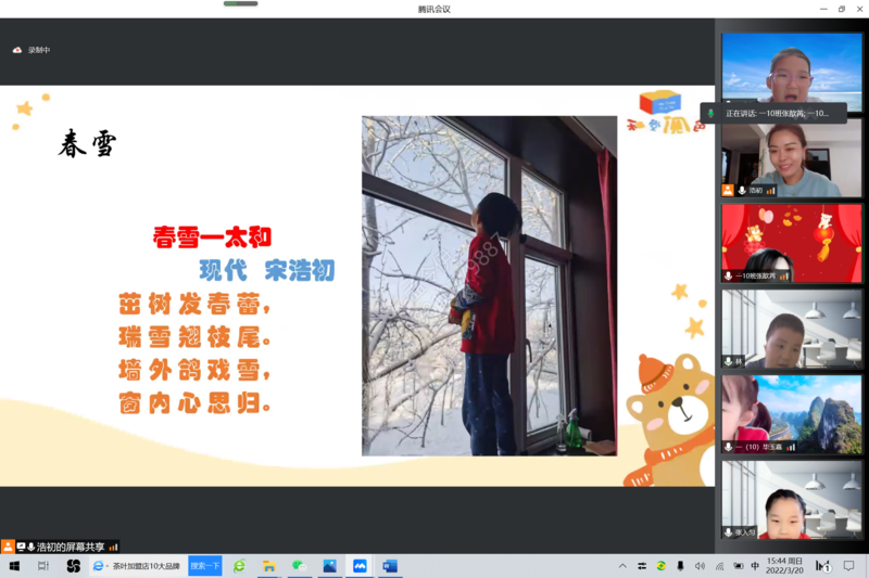 活动中,孩子们分享了《后羿射日》《跛鳖千里》等关于勇气、坚持的故事和书籍,传递了“谁有不怕艰难的意志,谁就是英雄”的理念,热情鼓励彼此以书为伴,坚强乐观,共迎春暖花开。“同学们,加油!”“张老师,我们爱您!”……孩子们在“云端”,持续传递着对老师、同学的思念和鼓励。