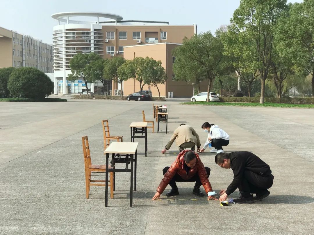 图为后勤工作人员布置检测场地