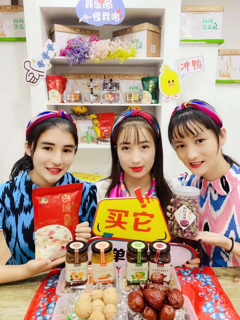 每天12点至14点、19点至22点,是和田地区洛浦县洛蓝古丽团队维吾尔族女主播小美、大努和小努的直播时间,小美擅长民族舞蹈,小努精于产品推介,普通话最标准的大努是淘宝直播间的红人,拥有一大批“回头客”粉丝。