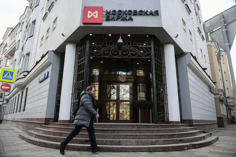 这是2月24日拍摄的位于俄罗斯首都莫斯科的莫斯科证券交易所的资料照片。新华社发(叶甫盖尼·西尼岑摄)