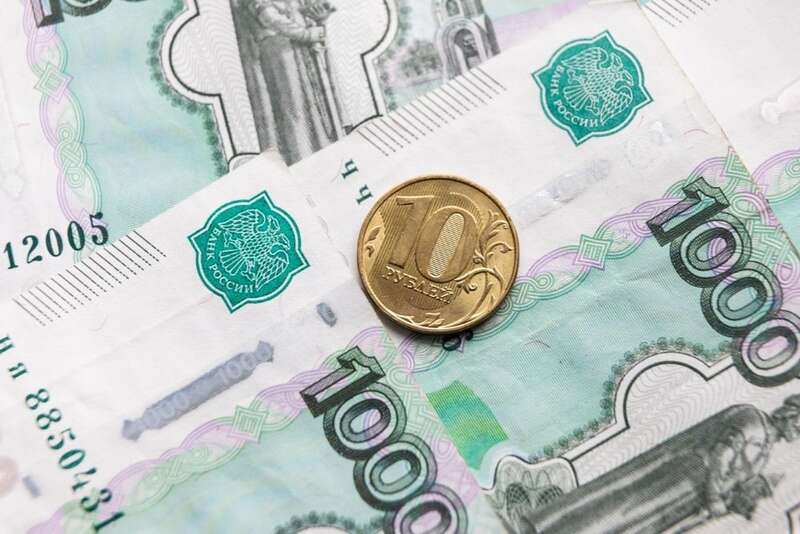 这是4月2日在俄罗斯首都莫斯科拍摄的卢布纸币和硬币。新华社记者白雪骐摄