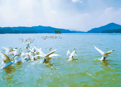 位于罗田县境内的湖北天堂湖国家湿地公园自2016年成立以来,始终坚持“全面保护,科学修复,合理利用,持续发展”的原则,生态环境越来越好,山更青、水更绿、鸟更多。近日,大批天鹅、大雁、赤麻鸭飞临天堂湖国家湿地公园,场面壮观。