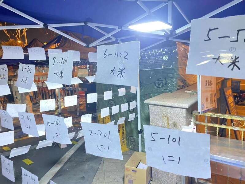 小区施行“足不出户”政策后,生鲜超市也随之暂停营业。“家里的大米前两天已经吃完了,想到这家买的时候才发现关门了,急得不得了。”宋志敏说,“结果一看微信,居委干部在群里说小区里又开店了,这下放心了。”他在居民微信群里下单,两小时后,就收到了一袋10公斤的大米。居民们纷纷表示,还是家门口的超市最方便。