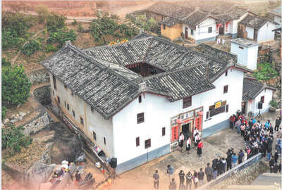 广东大埔县青溪镇红色遗址棣萼楼,吸引不少游客前来参观。 新华社记者 刘大伟摄
