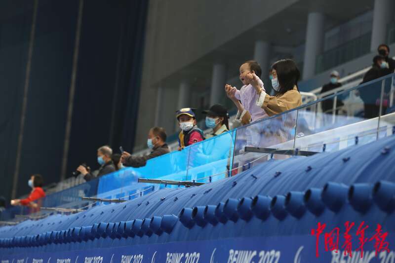 4月16日,北京,国家游泳中心,市民在看台上参观。中青报·中青网记者 陈剑/摄